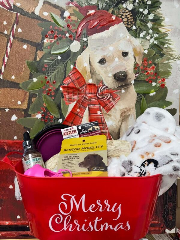 Whether your pup is small and spry or if your beloved graybeard is slowing down, Wapiti Labs gift baskets are the perfect gift for your dogs! Puppy need something new to chew on besides your shoes? Is your older dog starting to slow down due to lack of energy or achy joints? We have something for all ages and sizes of dogs, and can help them feeling like normal again!